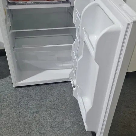 Die Gäste haben Zugang zu Selbstversorgungsmöglichkeiten wie einem Kühlschrank in einer Küchenzeile.